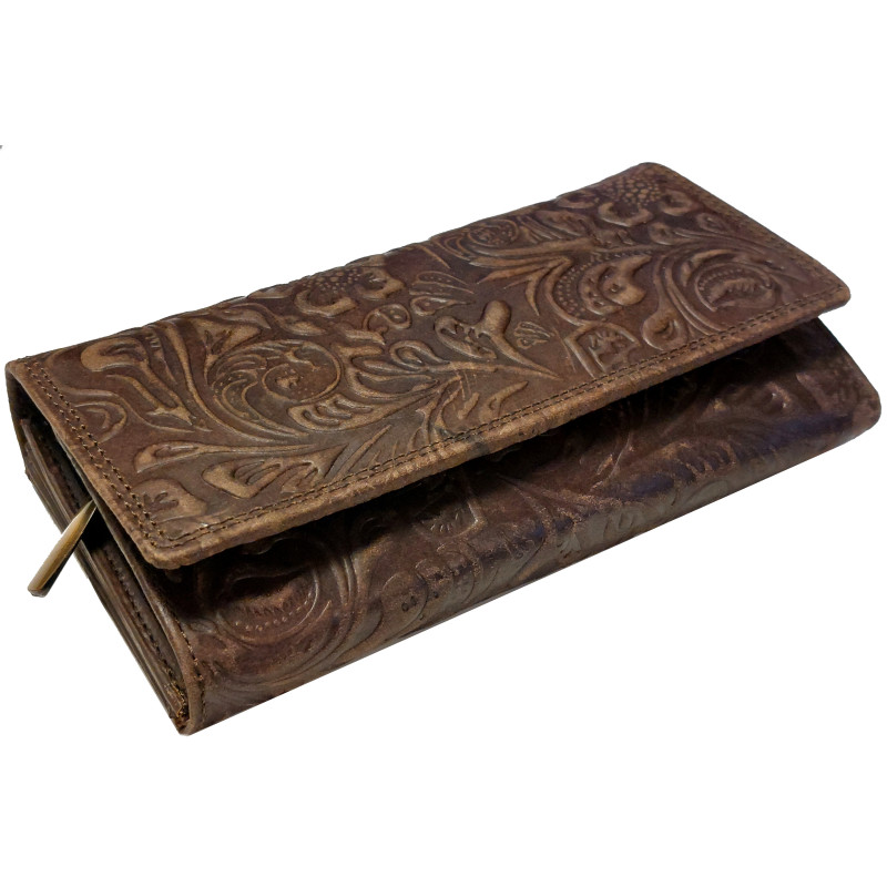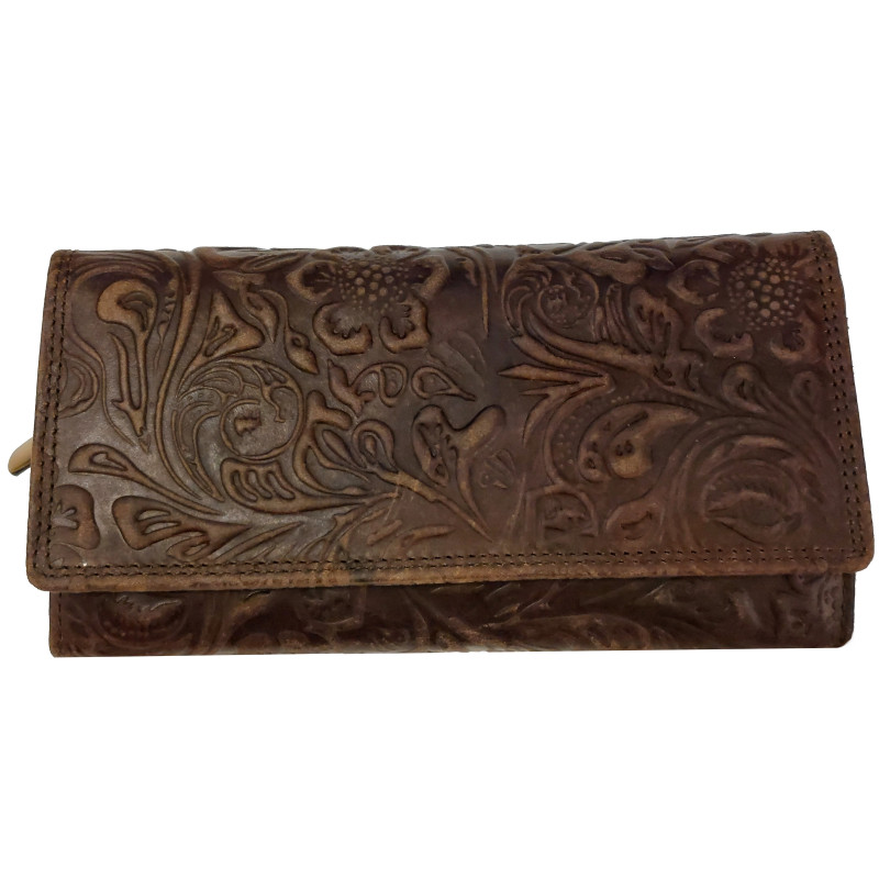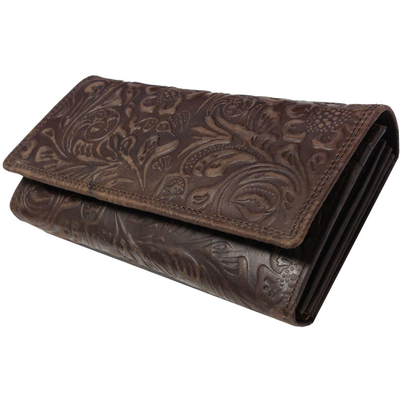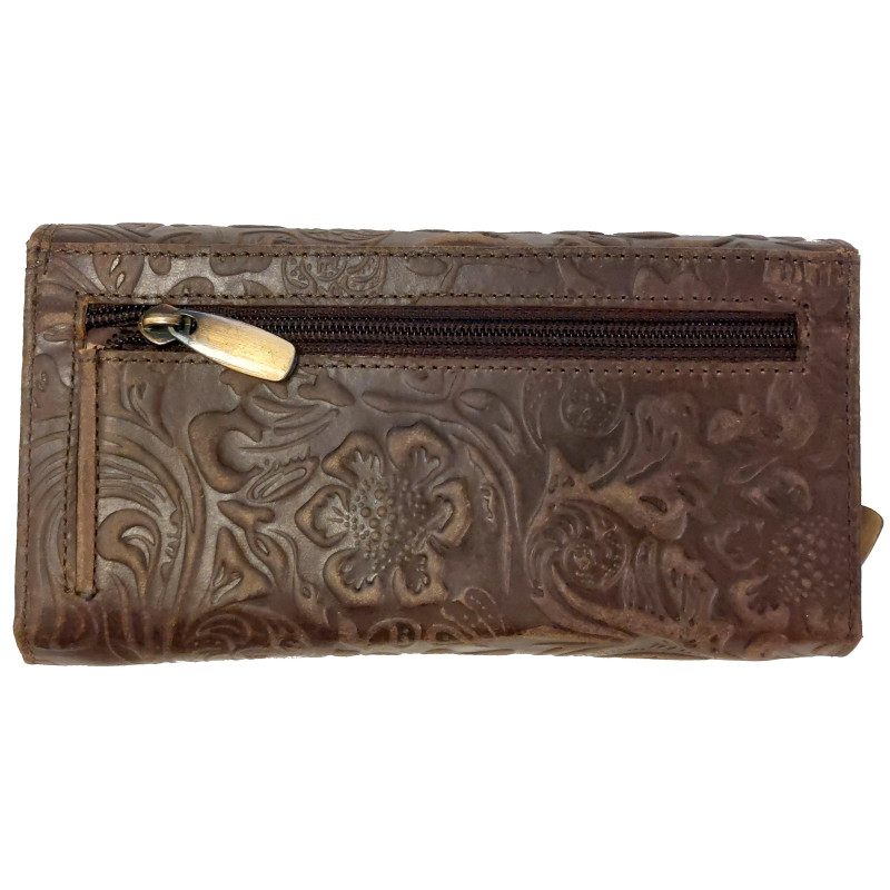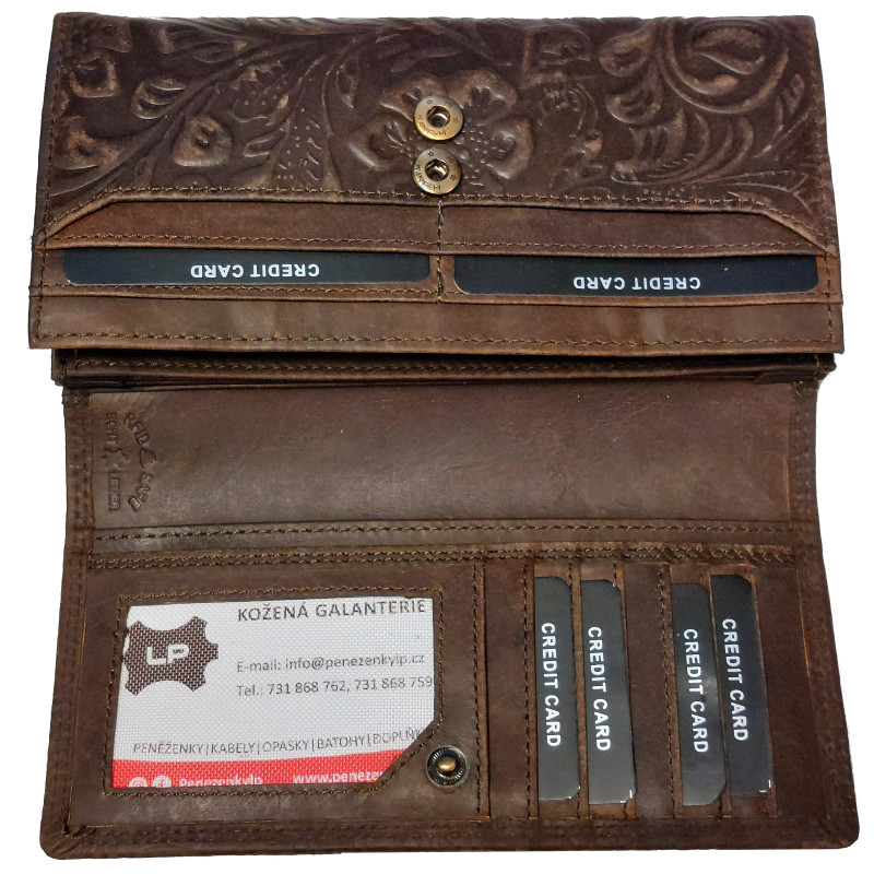 Kožená peněženka KVĚTY DARK BROWN