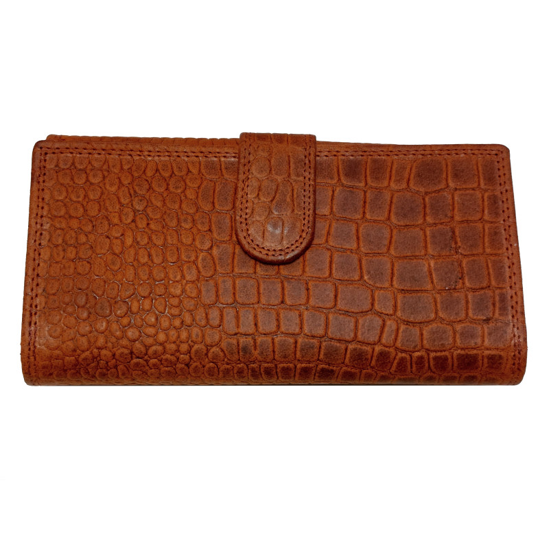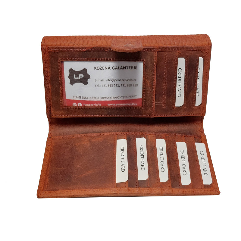 KOŽENÁ PENĚŽENKA CROCO BRICK RED S KLOPOU