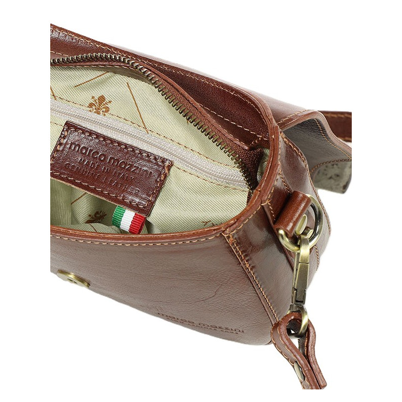 Tato italská kožená kabelka v nadčasovém stylu, je neuvěřitelně populární, zejména u žen které preferují vysokou kvalitu materiálu a zpracování. Kožené produkty Marco Mazzini se vyrábějí v Itálii v místních řemeslných dílnách, v oblasti s dlouhou tradicí kožedělného řemesla. Tyto vysoce kvalitní výrobky s univerzálním designem jsou promyšleným nákupem, který vám vydrží roky. Kabelka VERONA, je pohodlná pro nošení na rameni. Luxus a ruční práce je vidět na první pohled a vzbuzuje obdiv veřejnosti. Kabelka disponuje zipovou komorou. Nastavitelný popruh je dostatečně dlouhý.