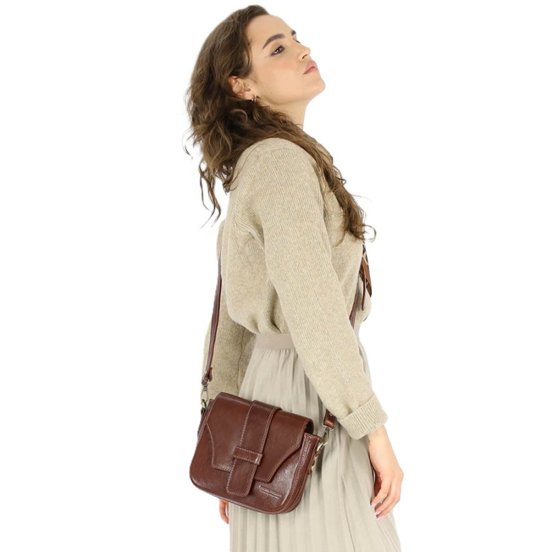 Italská kožená kabelka přes rameno VERONA hnědá