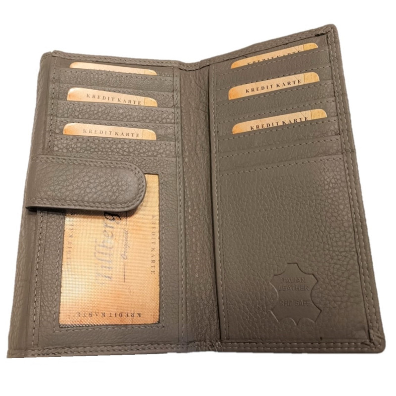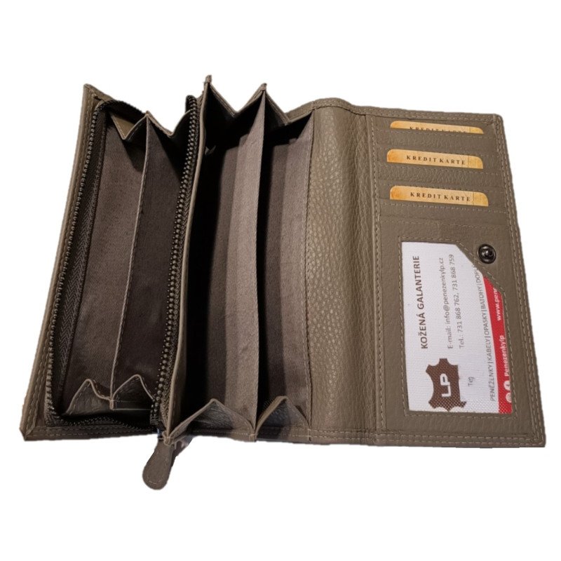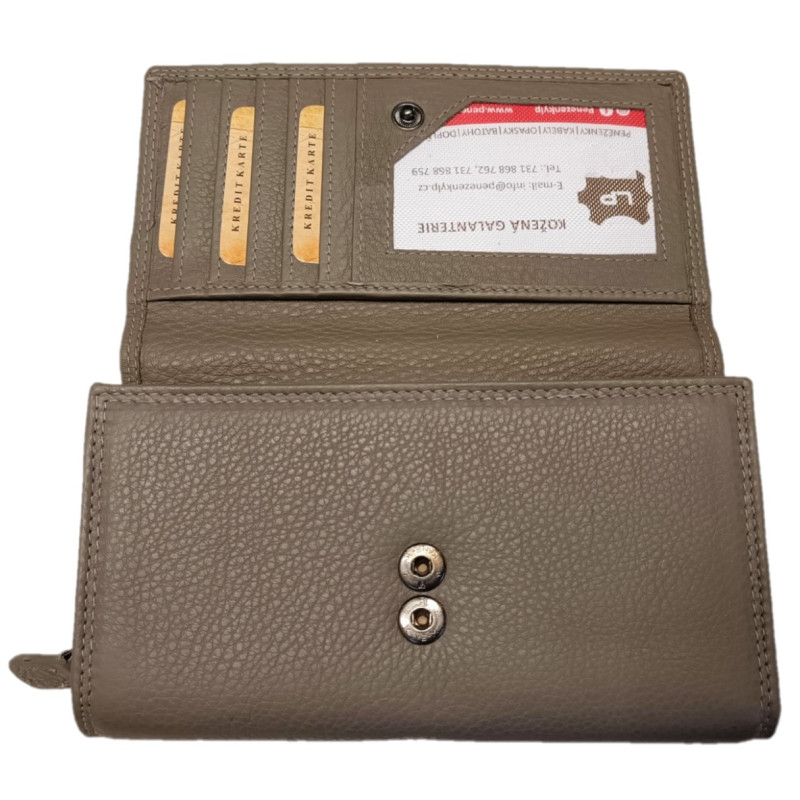 Tato kožená peněženka vyrobená z kvalitní měkké kůže je velmi příjemná na dotyk a vejde se do každé kabelky. Peněženka nabízí hodně vnitřního prostoru, na kreditní karty, doklady, bankovky i mince.