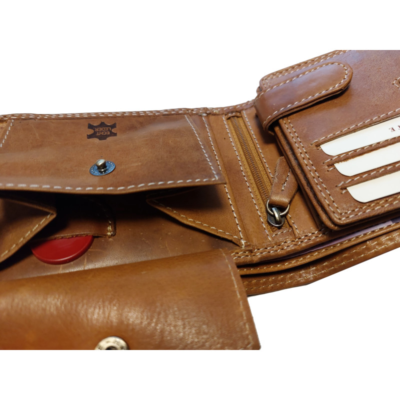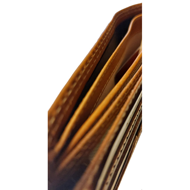 Kožená, luxusní peněženka je skvělým tipem na dárek. Výhodou peněženky je krásný design, pevná přírodní kůže a skvělé zpracování. Peněženka má spousty kapes a přihrádek na doklady, karty, bankovky i mince. Kvalitní kůže WATER BUFFALO, ruční zpracování a šití speciální nití, zajistí dlouhou životnost, této celokožené peněženky.