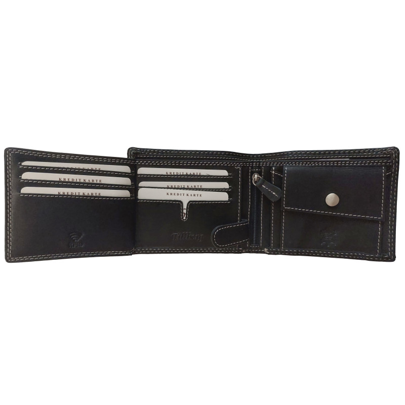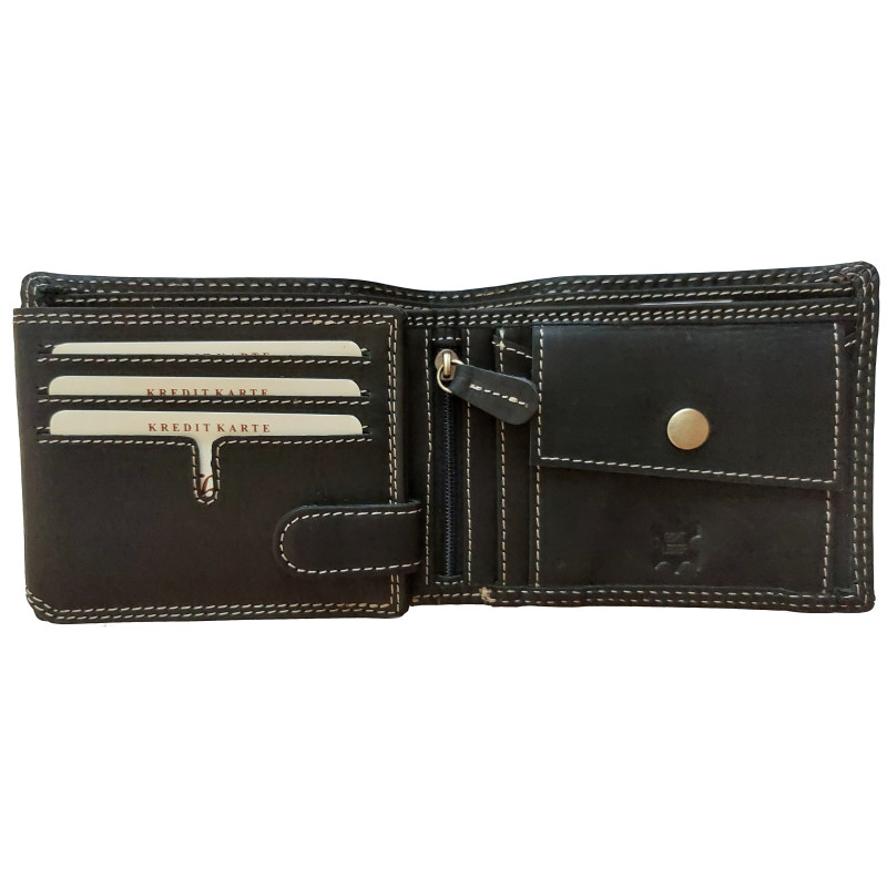 Kožená, luxusní peněženka je skvělým tipem na dárek. Výhodou peněženky je krásný design, pevná přírodní kůže a skvělé zpracování. Peněženka má spousty kapes a přihrádek na doklady, karty, bankovky i mince. Kvalitní kůže WATER BUFFALO, ruční zpracování a šití speciální nití, zajistí dlouhou životnost, této celokožené peněženky.