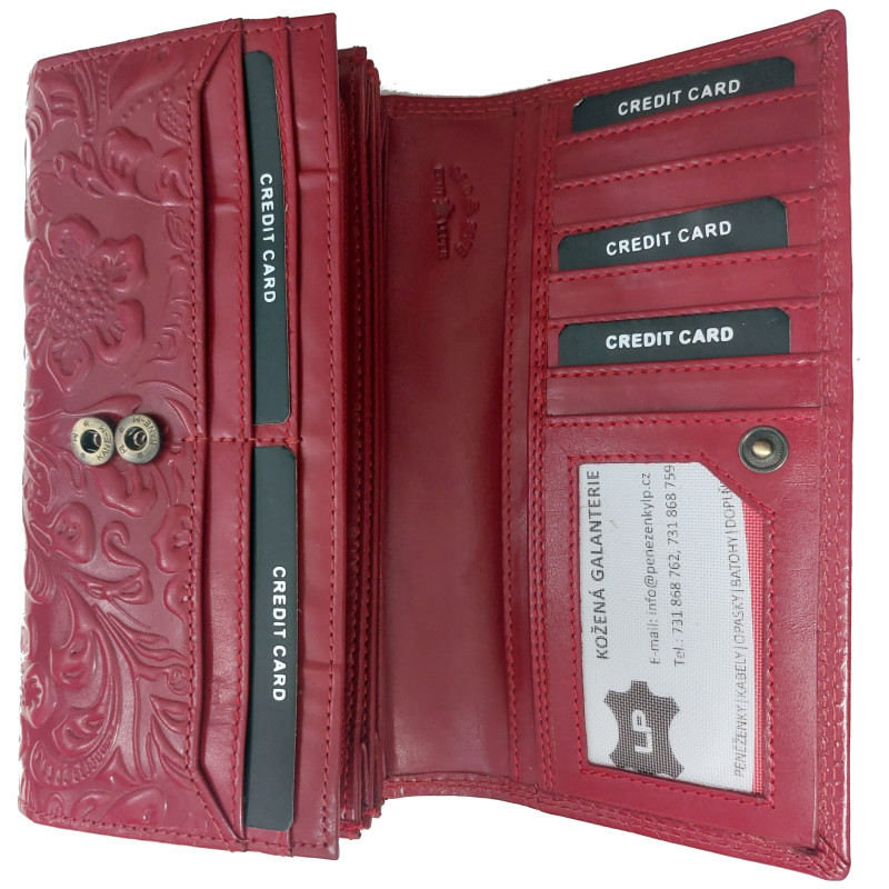 Kožená peněženka květy RED BORDO