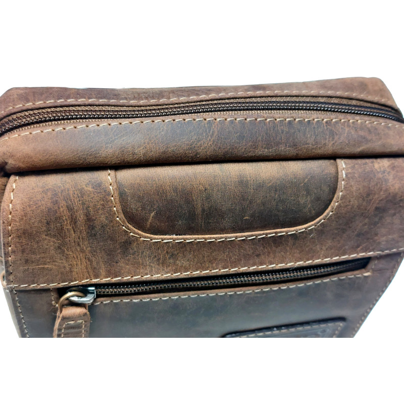 Velmi pěkná, kožená taška přes rameno, je nezbytný doplněk pro každého muže. Jistě oceníte kvalitní zpracování a moderní design. Tato kabela je velmi oblíbená, není velká ani malá zkrátka akorát. Pod přední klopou s magnetickým drukem a zipovou kapsou, je otevřená kapsa. Dále větší komora na osobní věci a na zadní straně je zipová kapsa. Doporučujeme a řadíme mezi TOP produkty.