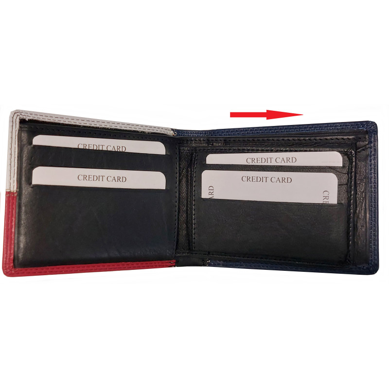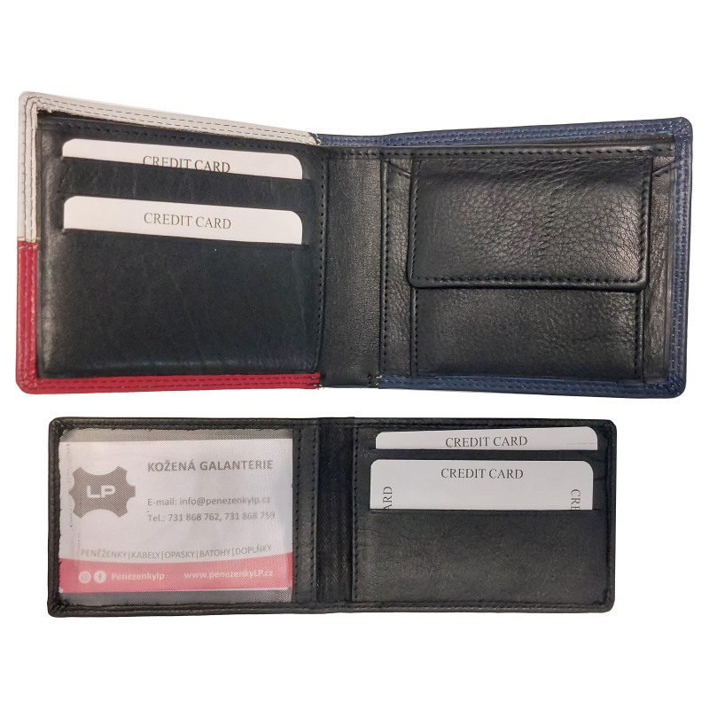 Krásná peněženka z pravé, hovězí, měkké kůže, potěší pravého vlastence. Kluci i holky, tahle peněženka je moc pěkný kousek. Kvalitním zpracováním se tato krasavice posouvá na vrchol České výroby, koženého zboží. Velmi příjemná na dotyk a ta naše krásná vlaječka je zkrátka super. Samozřejmě má dostatek kapsiček na doklady, kreditky, bankovky i mince. Zajímavostí této peněženky, je vsuvka s přihrádky na kreditní karty. Tuto část můžete úplně odstranit a tím docílíte pěkně, tenké peněženky.