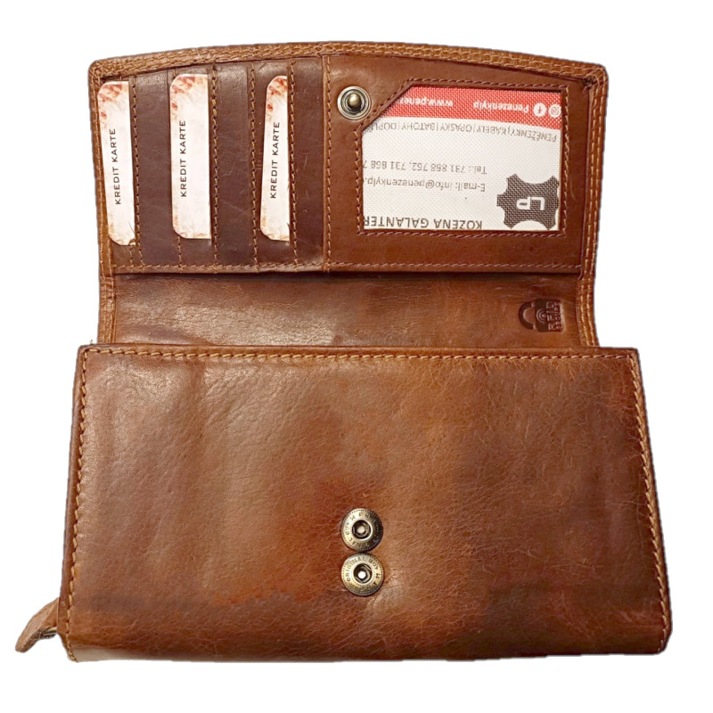 Kožená, luxusní peněženka je skvělým tipem na dárek a jistě udělá radost každému, kdo má rád kvalitu. Tato peněženka je opravdu moc pěkný kousek. Skvělé zpracování přírodní hovězí kůže, jistě ocení každý znalec takových skvostů jako je tento. Mistrovská práce je vidět na první pohled. Každý kousek se pyšní svou originalitou. Tak neváhej a přidej se k vyznavačům kožených doplňků. Peněženka má skvělý design, spousty kapes a přihrádek na doklady, kreditní karty, bankovky i mince.