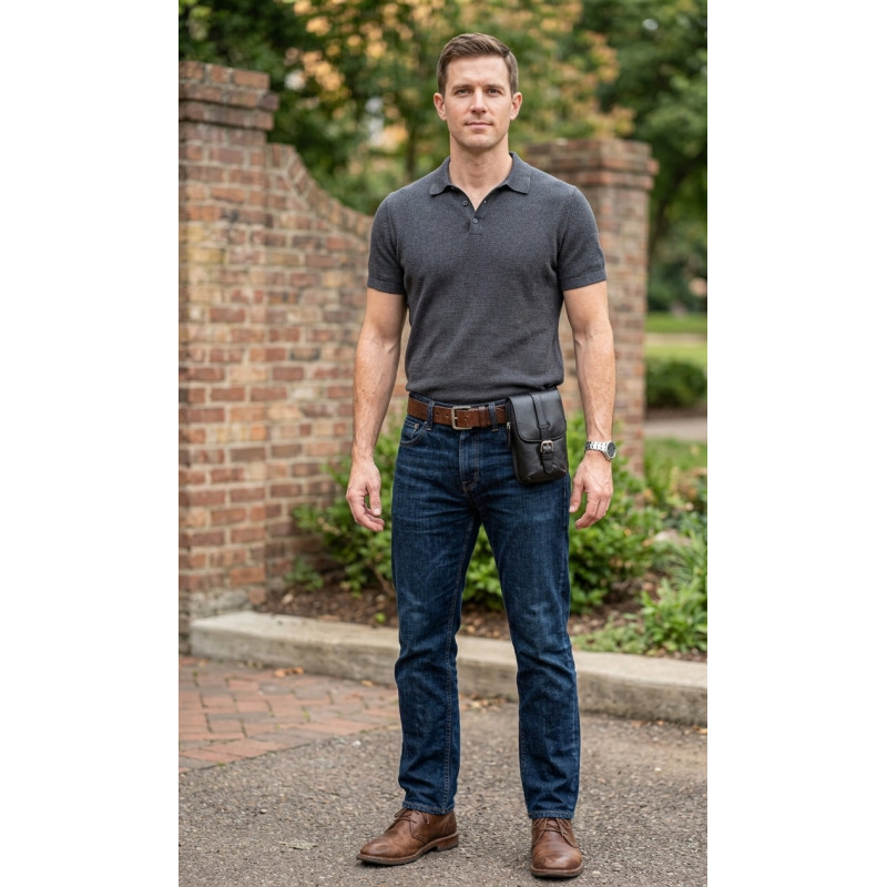 Kožená kapsa pro nošení na opasku, nebo s přiloženým popruhem možno nosit jako malou tašku přes rameno. Kapsa je vhodná zejména k uložení telefonu, peněženky a dalších drobností. Precizně zpracovaná hovězí kůže je měkká, na dotyk velmi příjemná, drží tvar a s kvalitním šitím, zajistí dlouhou životnost. Brašnička je skvělým doplňkem k vašemu outfitu, perfektně doladí váš mužný vzhled a charakter.
