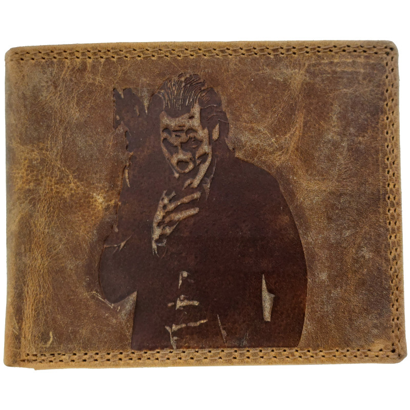 Velmi pěkná, kožená peněženka se vzorem JOKERA, má krásný design a je vyrobena z velmi pevné broušené kůže. Tato peněženka vlastní mnoho potřebných kapsiček na různé doklady, kreditní karty, bankovky i mince.