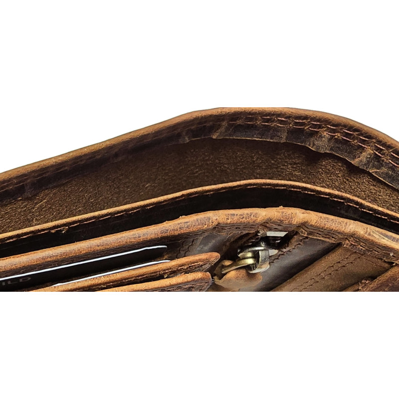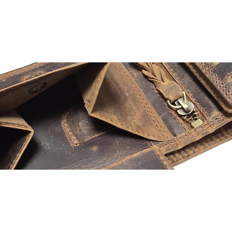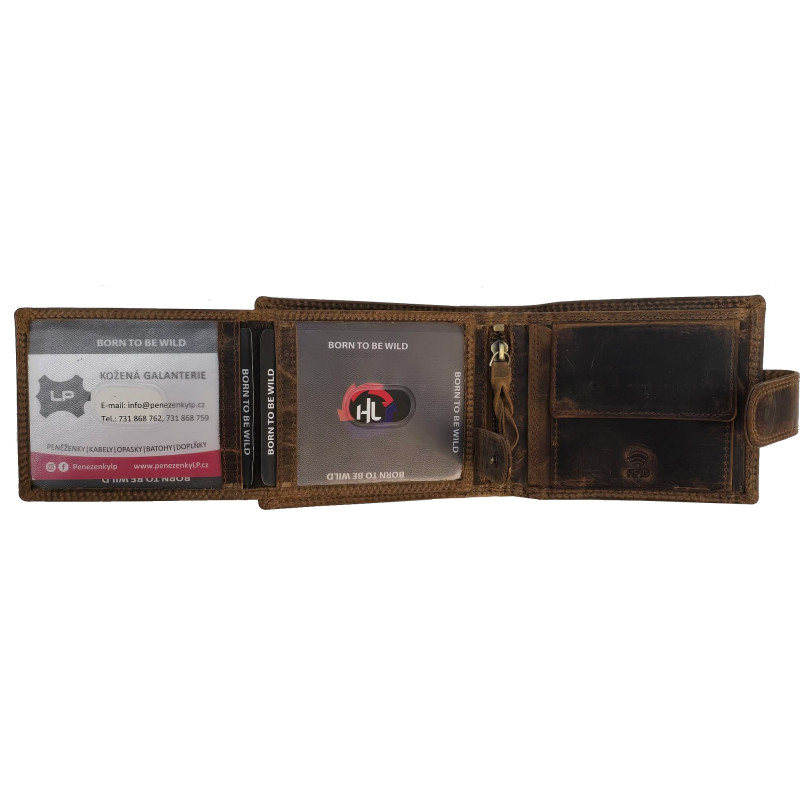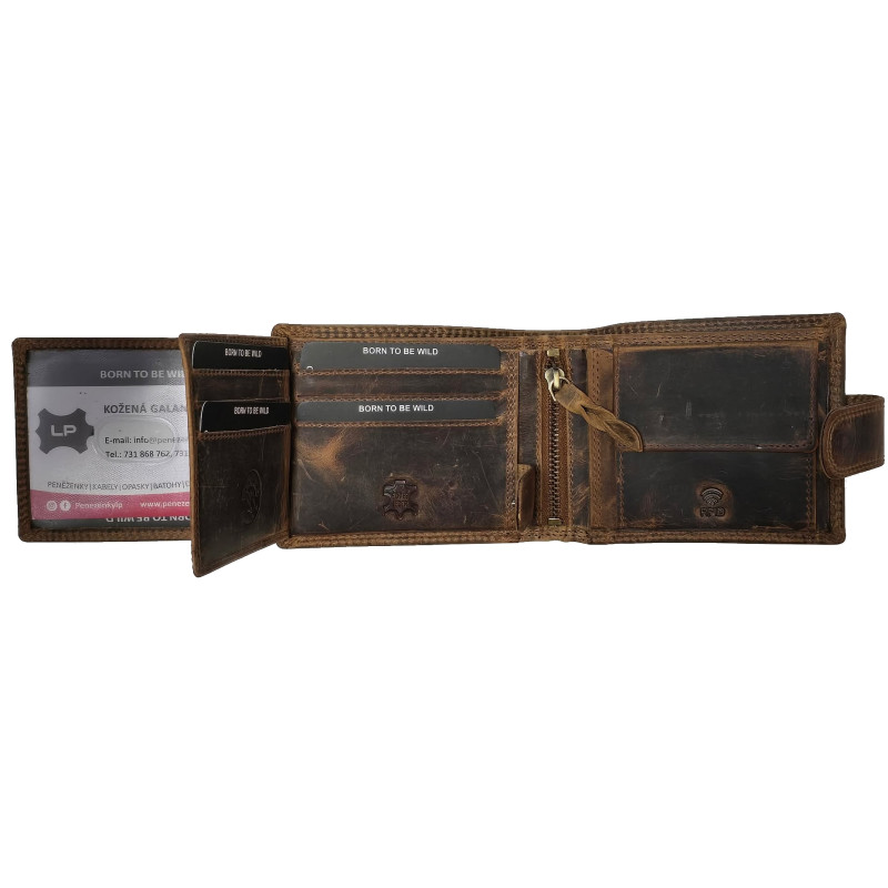 Kožená, luxusní peněženka je skvělým tipem na dárek a jistě udělá radost každému muži. Výhodou peněženky je krásná pevná kůže a skvělé zpracování. Peněženka má spousty kapes a přihrádek na doklady, bankovky i mince.