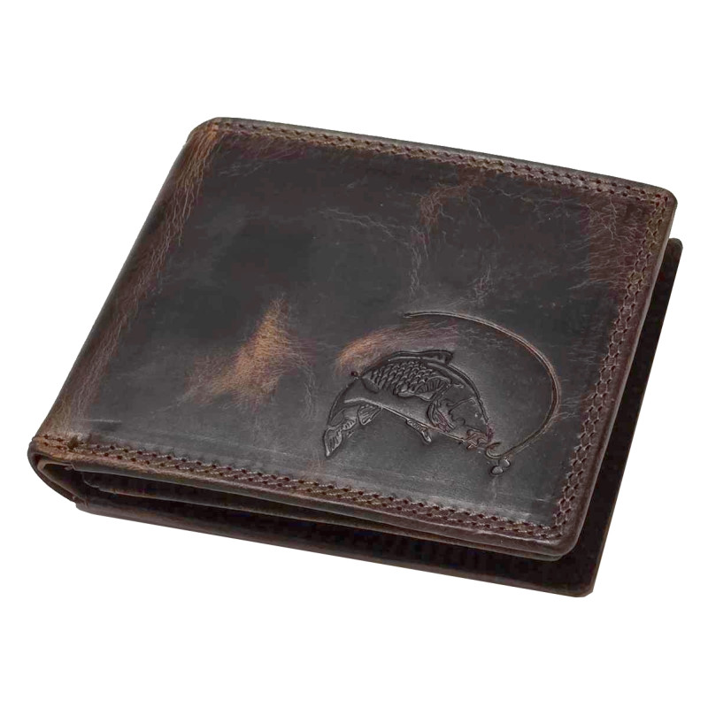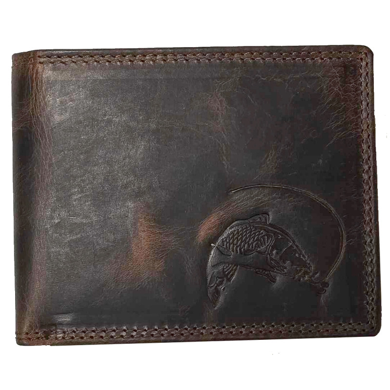 Velmi pěkná, tenká peněženka která se vejde do každé kapsy. Tato kožená peněženka je vyrobena z kvalitní, hovězí broušené kůže. Kvalitní zpracování s pečlivě vyraženým obrázkem kapříka jistě potěší zejména rybáře.