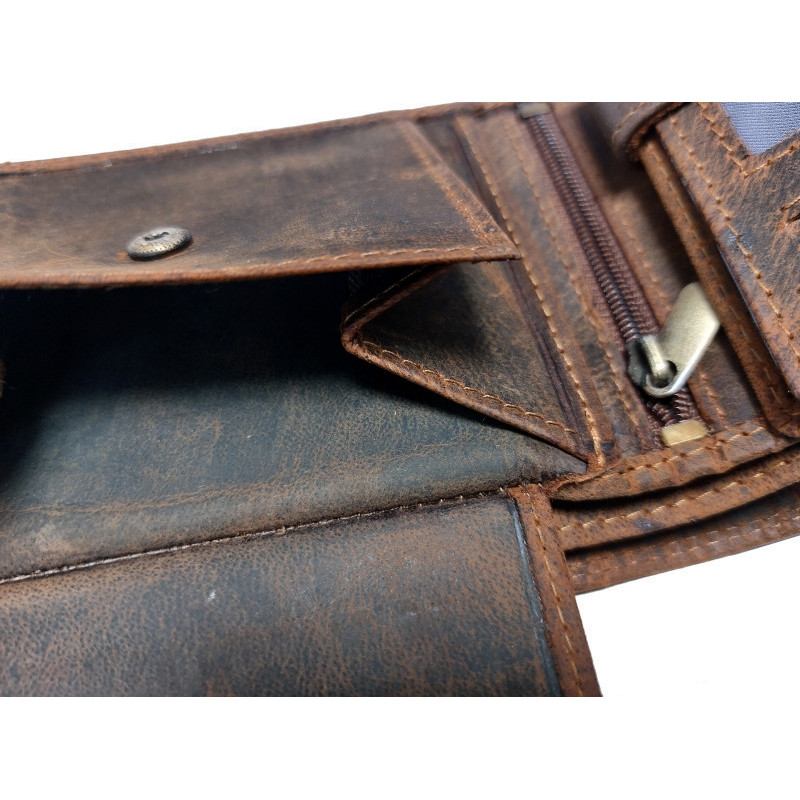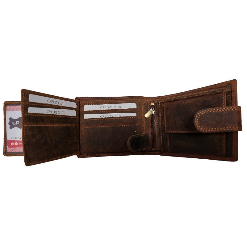 Tato jedinečná peněženka má krásný design, je vyrobena z pevné broušené kůže. Precizně vyražený znak horkou ražbou, dominuje přední straně peněženky. Kožená peněženka je velmi prostorná a obsahuje mnoho potřebných kapsiček na doklady, kreditní karty, bankovky i mince.