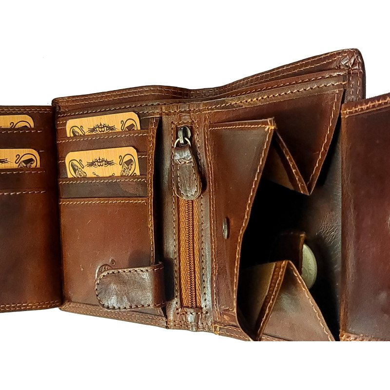 Tato peněženka je vyrobena z masivní bůvolí kůže, která je synonymem pro odolnost. Je pevná a stavěná na to aby přežila stovky kilometrů na cestách. Precizně detailní ražba je pro každého, kdo má naftu v krvi. Není to potisk je to charakter a kus poctivé práce s pravou kůží.