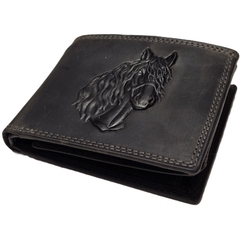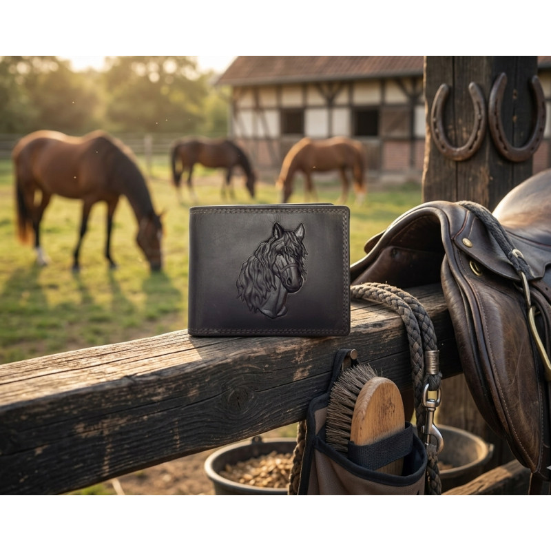 Co pro vás znamenají koně? Je to zvuk kopyt v ranní rose, svoboda větru ve hřívě nebo ten hluboký, tichý moment porozumění v ohradě? Tato peněženka není jen o nošení peněz a karet. Je to tichý společník, který vám připomene kam patří vaše srdce, i když sedíte v kanceláři nebo stojíte ve frontě u pokladny. Je to váš kousek divočiny v zajetí velkoměsta. 3D reliéf koně je propracovaný, jako by jste se dotýkali živého koně. Peněženka je vyrobena z kvalitní přírodní kůže, která voní po starých sedlech a prachu prérie. Vaše bankovky a karty budou v bezpečí, peněženka disponuje dostatečným množství přihrádek a je chráněna technologií RFID.