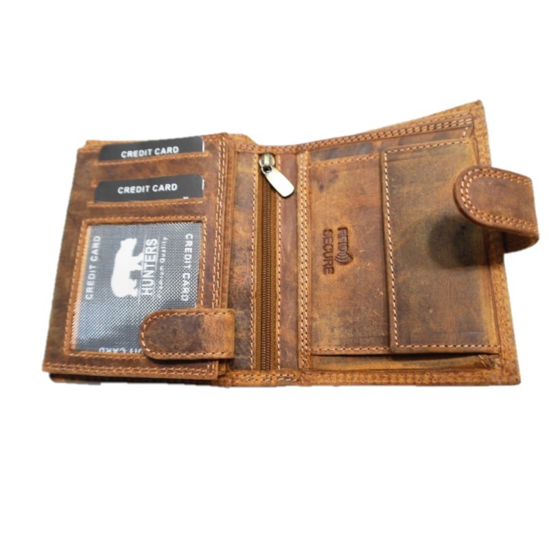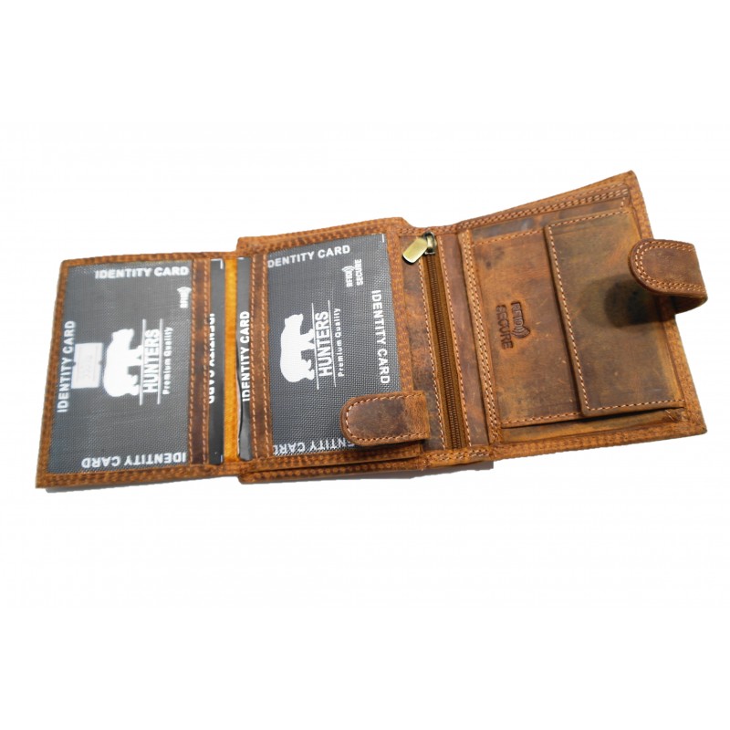 Kožená, luxusní peněženka je skvělým tipem na dárek. Peněženka má spousty kapes a přihrádek na doklady, kreditní karty, vizitky, bankovky i mince. Kvalitní hovězí kůže, krásný design, ruční zpracování a šití speciální nití, zajistí dlouhou životnost, této celokožené peněženky. Pečlivě vyražené logo HUNTERS.
