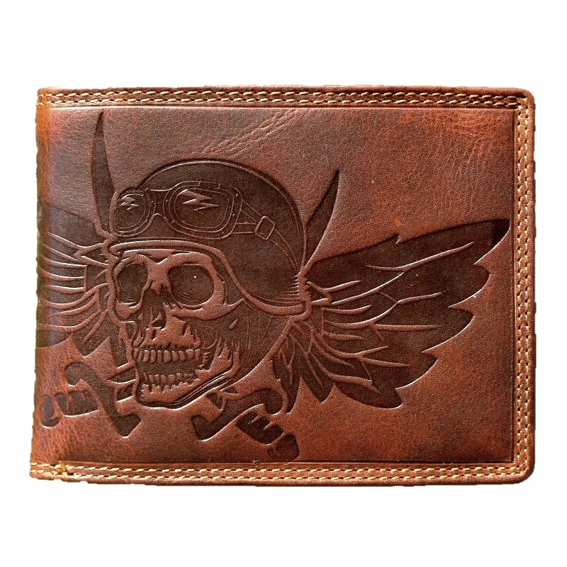 Kožená hnědá peněženka lebka