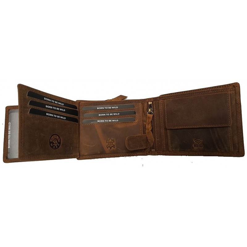 Kožená peněženka s kancem ,vystihuje silné muže vyžadující kvalitu a pevnost pravé kůže.