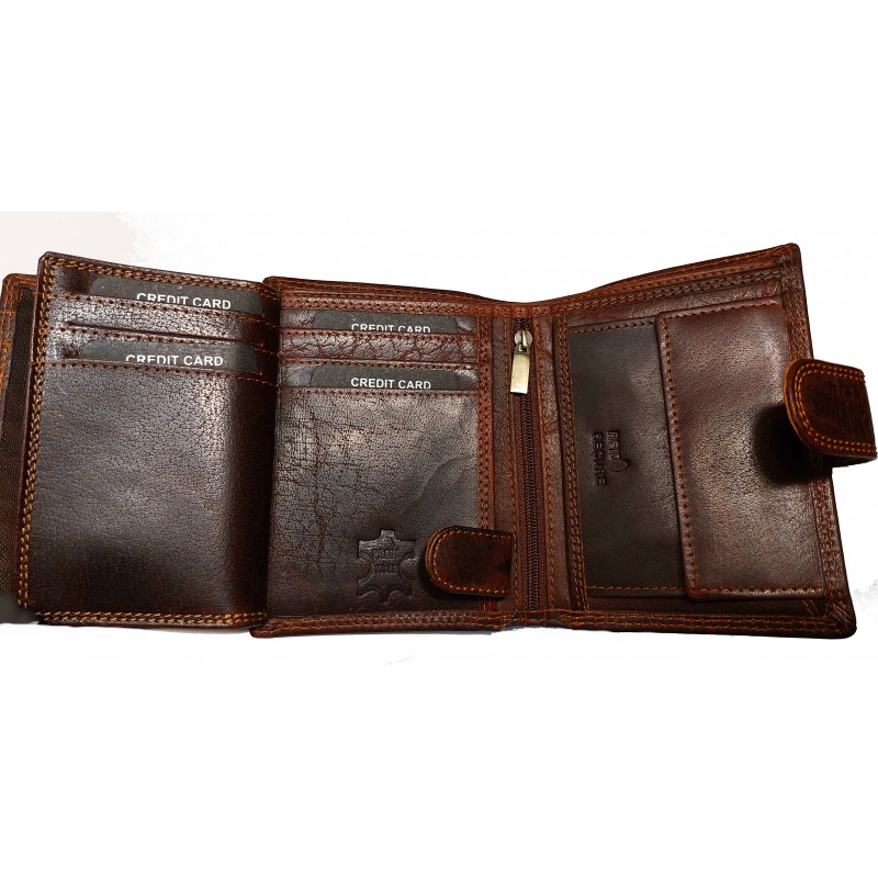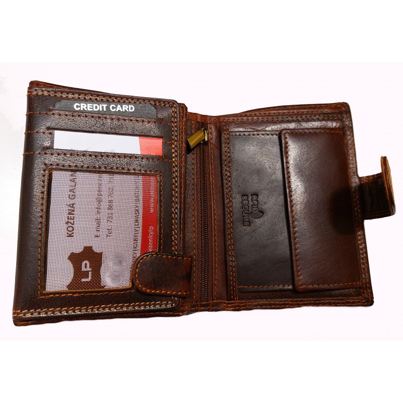 Kožená peněženka vystihuje silné muže, vyžadující kvalitu a pevnost přírodní kůže. Předností této celokožené peněženky je rozměr.Pohodlně pojme 4 velké doklady např. technický průkaz .