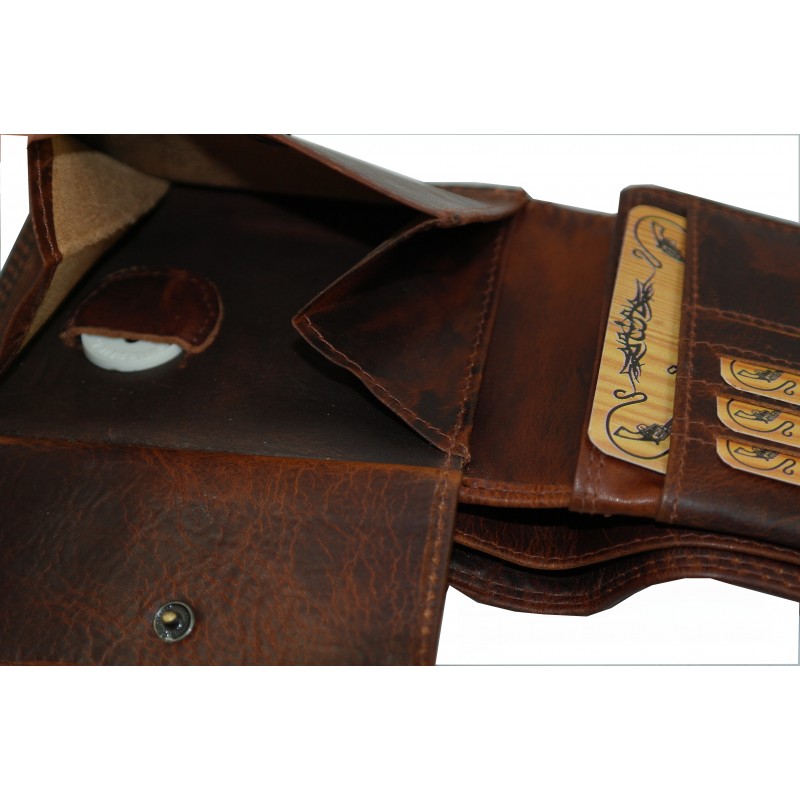 Kožená, luxusní peněženka je skvělým tipem na dárek. Výhodou peněženky je krásný design, pevná přírodní kůže a skvělé zpracování. Peněženka má spousty kapes a přihrádek na doklady, karty, bankovky i mince. Kvalitní kůže WATER BUFFALO, ruční zpracování a šití speciální nití, zajistí dlouhou životnost, této celokožené peněženky. Kvalitně vyražené logo divokého západu, rebelství a svobody.