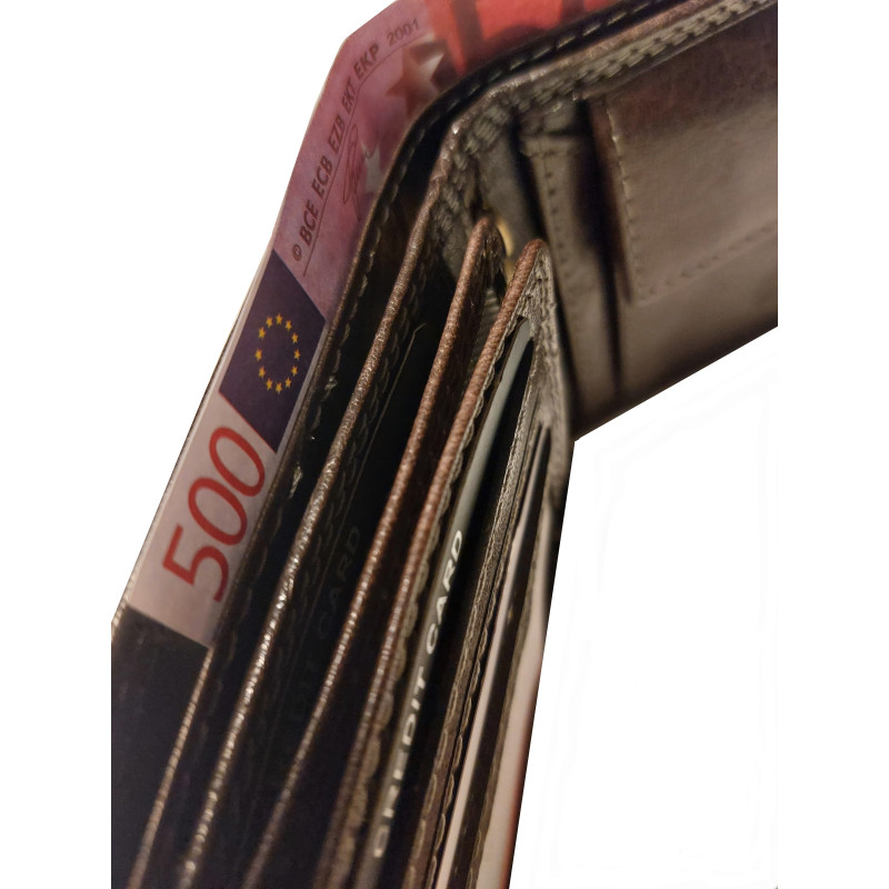 Kožená peněženka udělá radost každému, kdo má rád kvalitu.Výhodou peněženky je nejen skvělý design, krásná pevná kůže a skvělé zpracování, navíc však má i peněženka spousty kapes a přihrádek na doklady, kreditky, bankovky i mince.