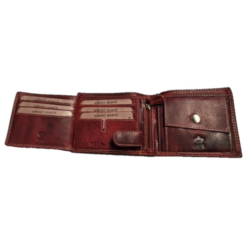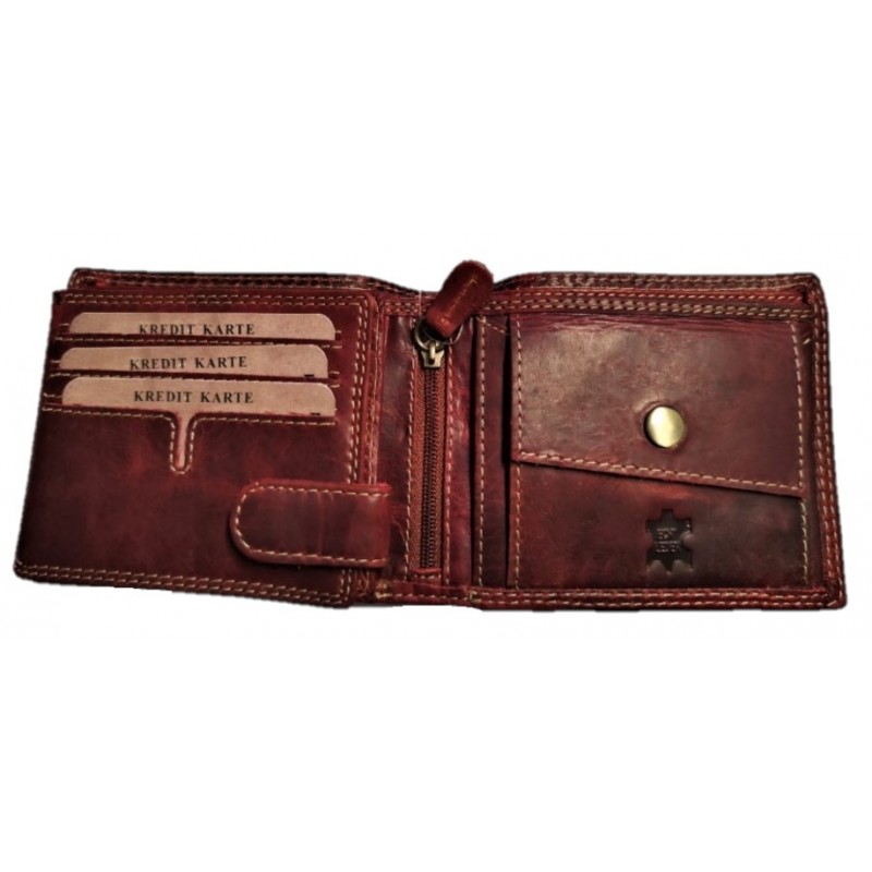 Kožená, luxusní peněženka je skvělým tipem na dárek. Výhodou peněženky je krásný design, pevná přírodní kůže a skvělé zpracování. Peněženka má spousty kapes a přihrádek na doklady, karty, bankovky i mince. Kvalitní kůže WATER BUFFALO, ruční zpracování a šití speciální nití, zajistí dlouhou životnost, této celokožené peněženky.