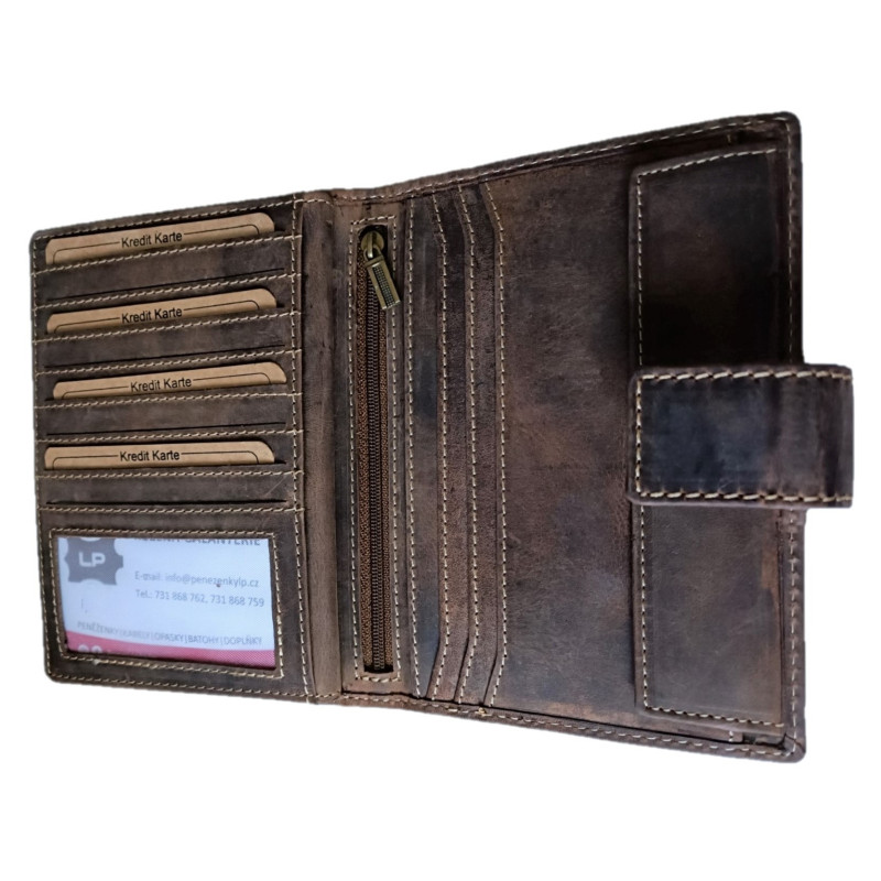 Toto není jen dokladovka, ale pořádné dokladové pouzdro, na malé i větší doklady. Mnoho přihrádek na karty i doklady , kapsa na mince. Precizní zpracování hovězí broušené kůže , zajistí dlouhou životnost.